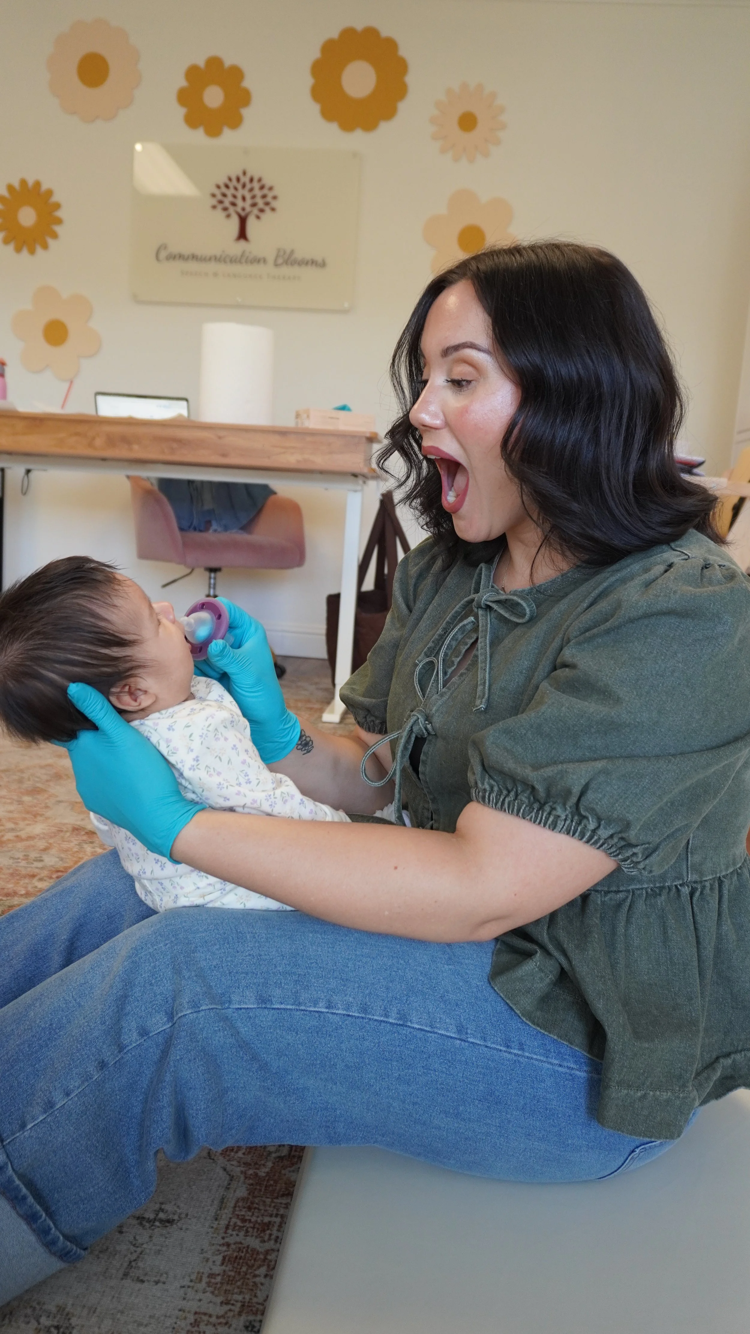 No. Blooming Babies is a parent education workshop, not therapy. You are learning, practicing, and building confidence as a caregiver. If something you hear in a session raises a concern, Mackenzie will help guide you toward the right next step, which may include a Bloom Consultation or a full evaluation at Communication Blooms.